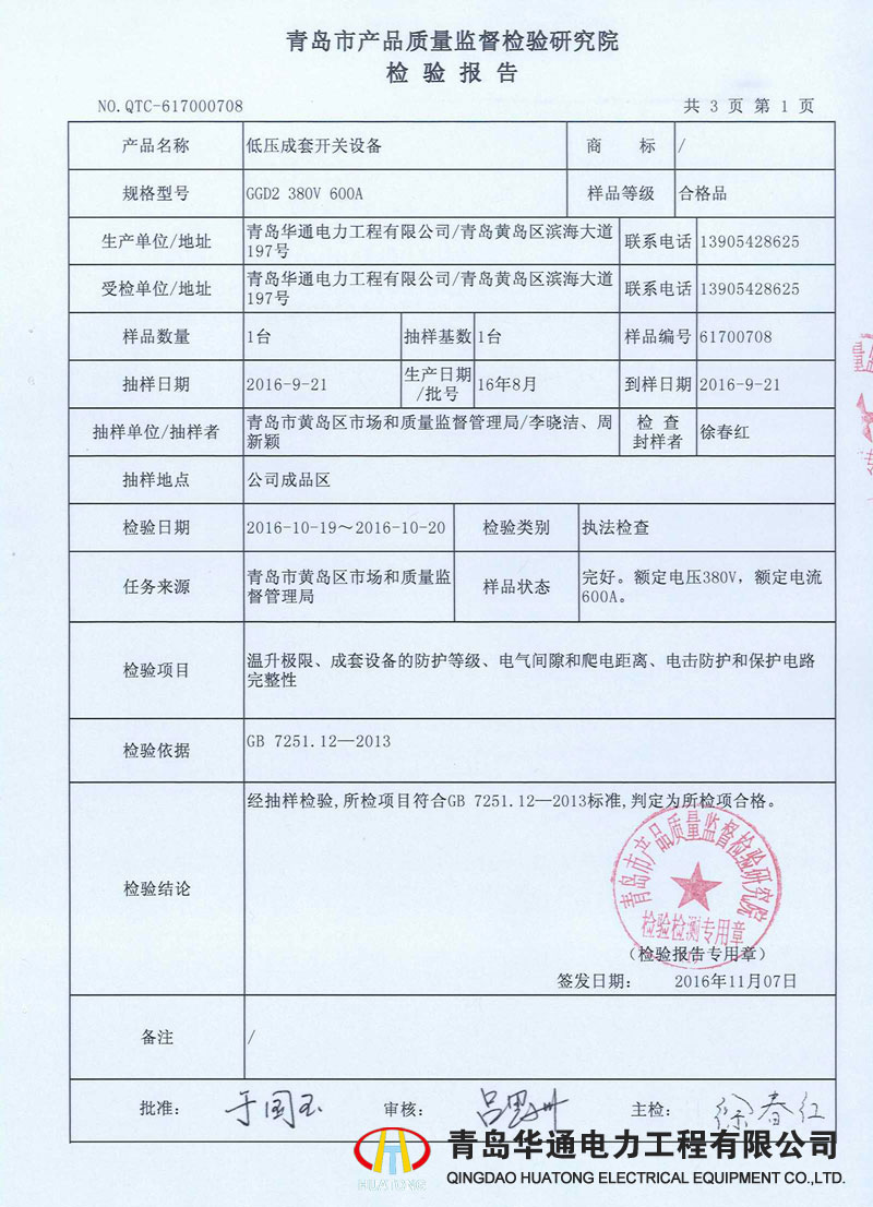 低壓成套開關設備檢驗報告低壓成套開關設備檢驗報告