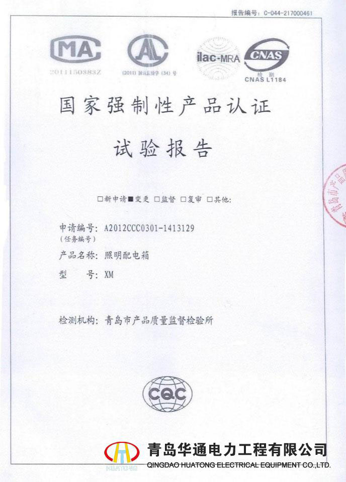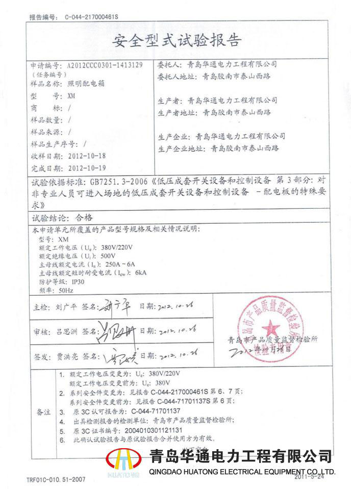 XM照明配電箱檢驗報告XM照明配電箱檢驗報告
