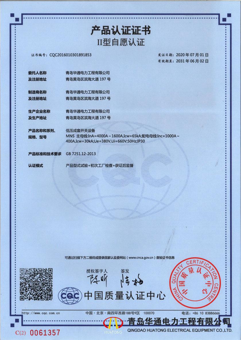 MNS4000產品認證證書Ⅱ型自愿認證